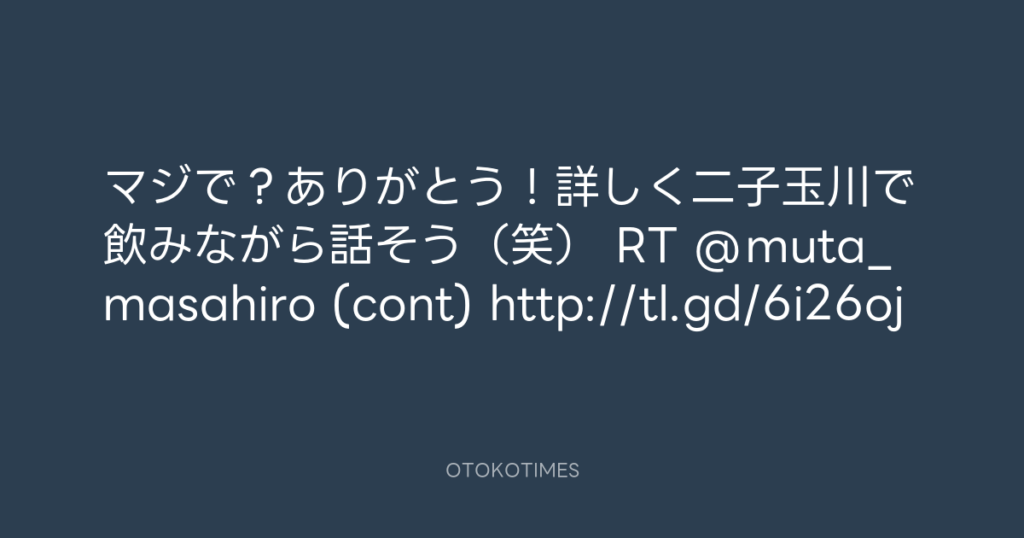 マジで?ありがとう!詳しく二子玉川で飲みながら話そう(笑) RT @muta_masahiro ... -