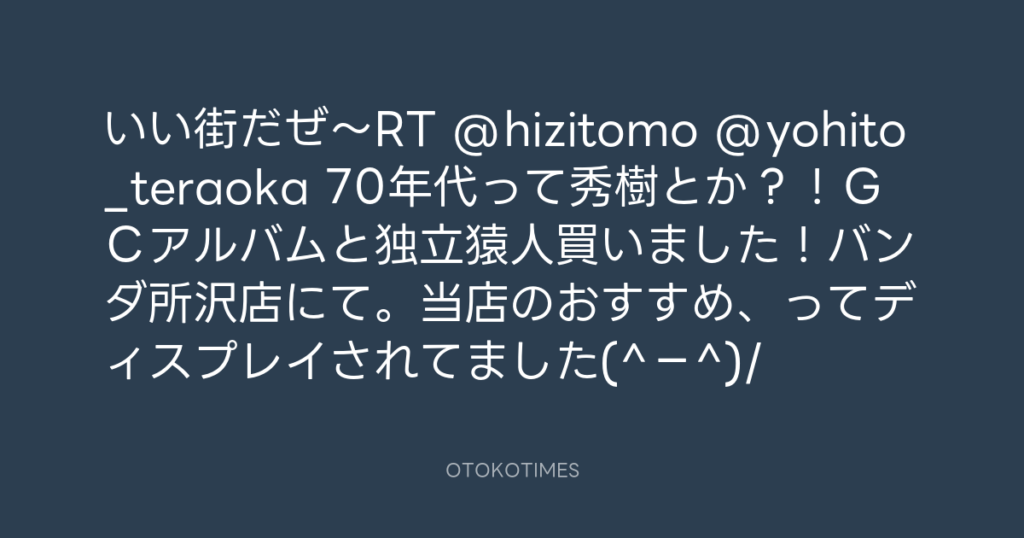 いい街だぜ〜RT @hizitomo @yohito_teraoka 70年代って秀樹とか?!GCアルバムと... -