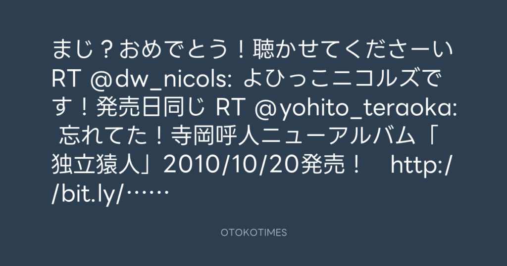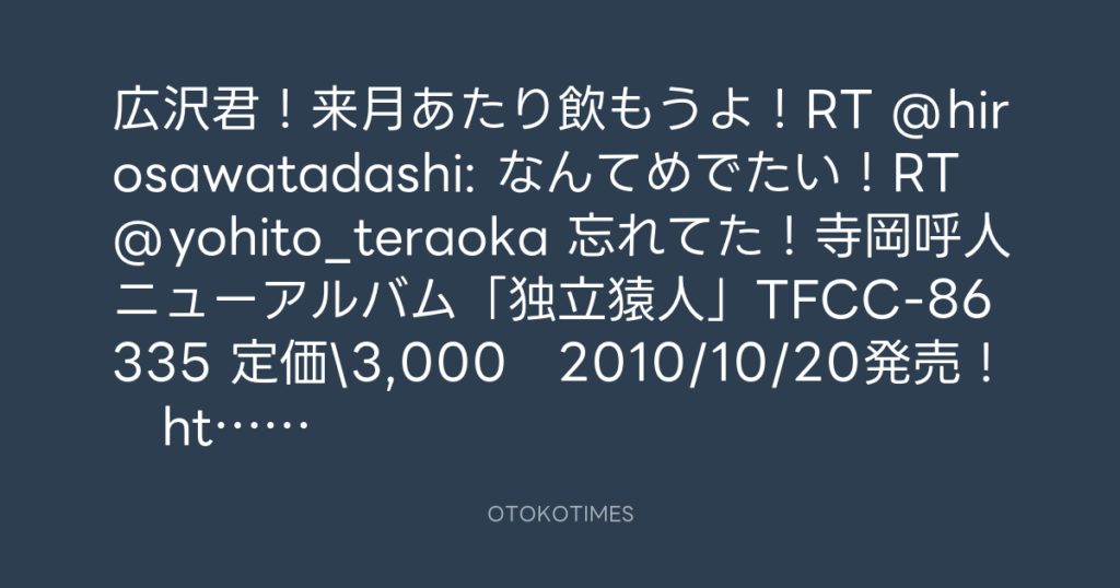 寺岡呼人 @yohito_teraoka – 23:04・2010年10月16日
