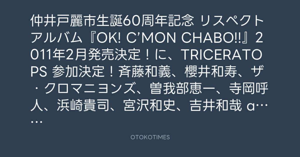 仲井戸麗市生誕60周年記念 リスペクトアルバム『OK! C’MON CHABO!!』2011年2月発売... -