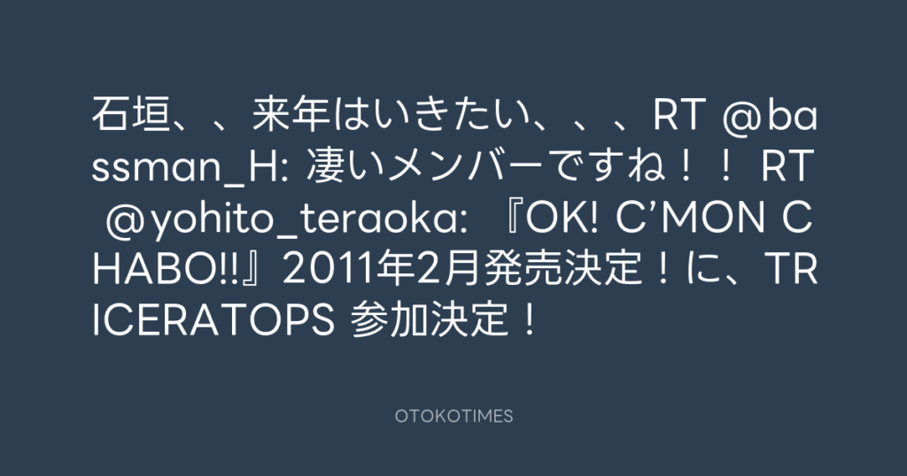 石垣、、来年はいきたい、、、RT @bassman_H: 凄いメンバーですね!! RT @yohito_... -