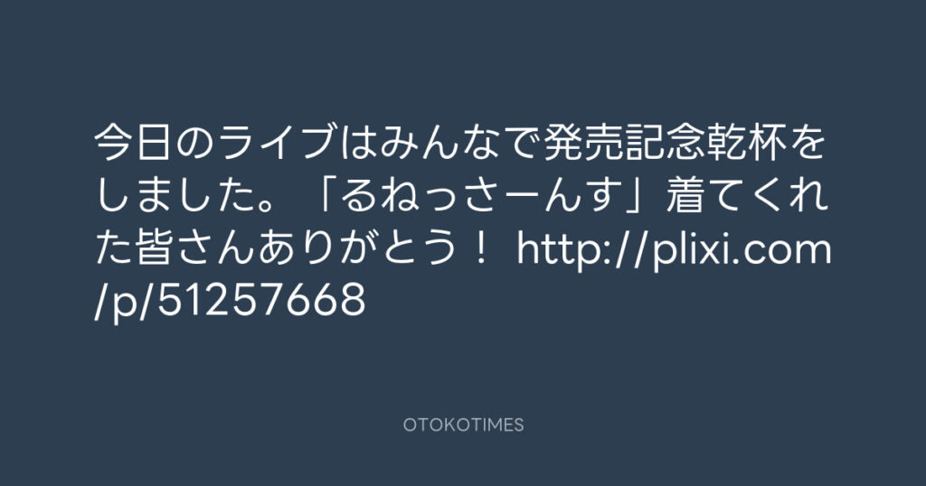 今日のライブはみんなで発売記念乾杯をしました。「るねっさーんす」着てくれた皆... -