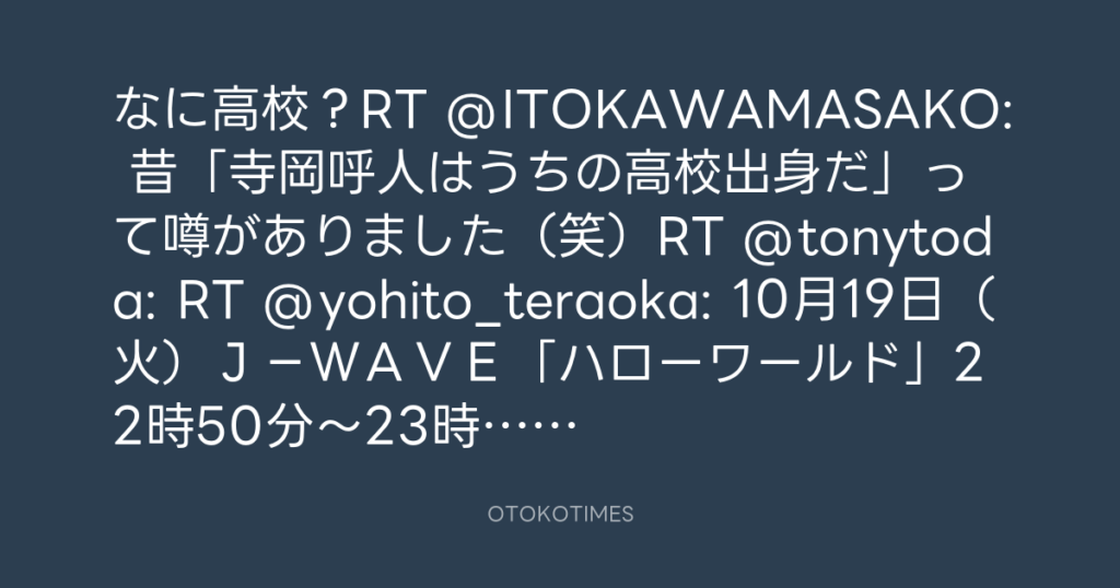 なに高校?RT @ITOKAWAMASAKO: 昔「寺岡呼人はうちの高校出身だ」って噂がありまし... -