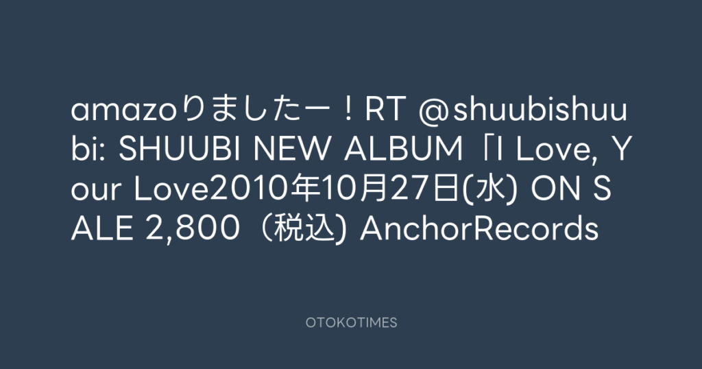 amazoりましたー!RT @shuubishuubi: SHUUBI NEW ALBUM「I Love, Your Love2010年1... -