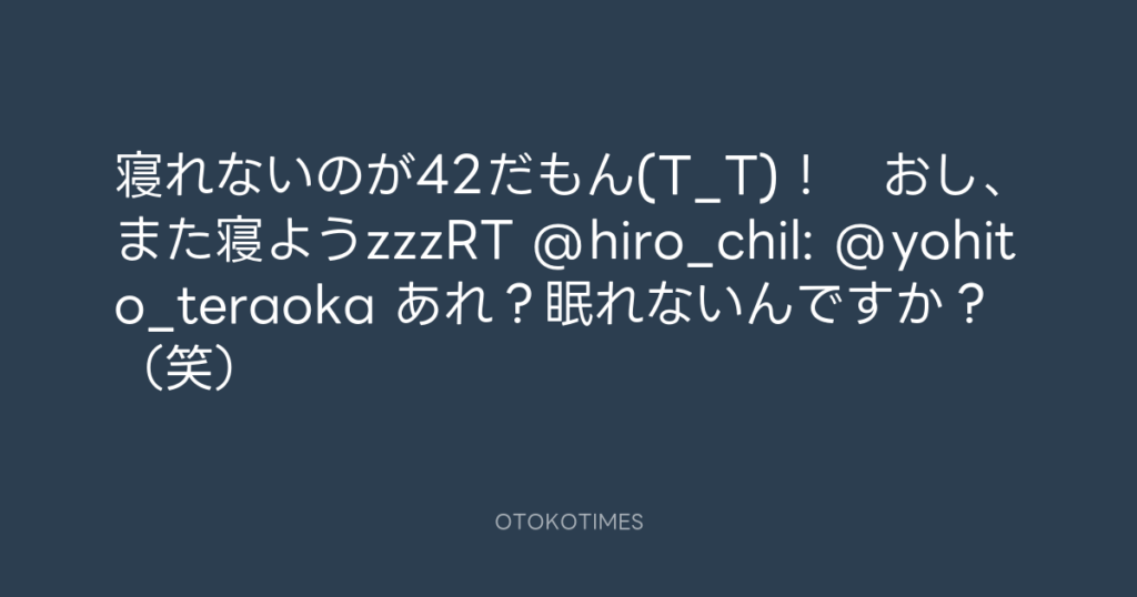 寝れないのが42だもん(T_T)! おし、また寝ようzzzRT @hiro_chil: @yohito_teraok... -