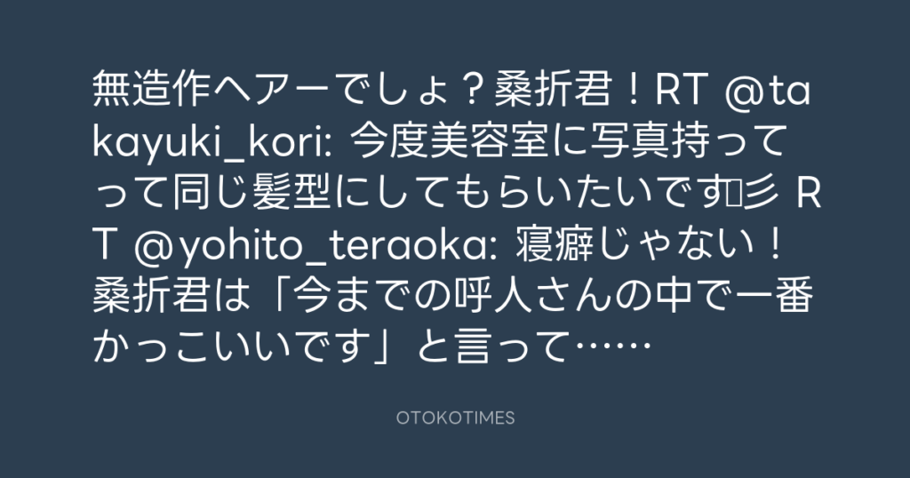 無造作ヘアーでしょ?桑折君!RT @takayuki_kori: 今度美容室に写真持ってって同じ... -