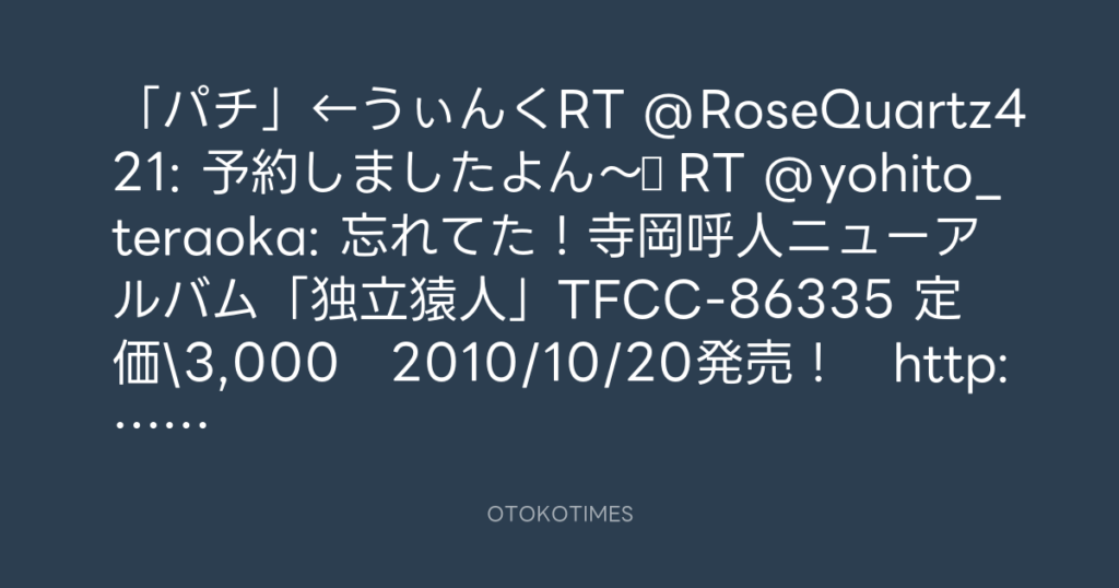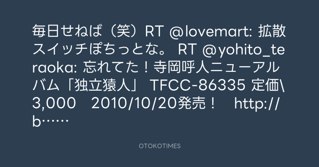 寺岡呼人 @yohito_teraoka – 23:43・2010年10月15日