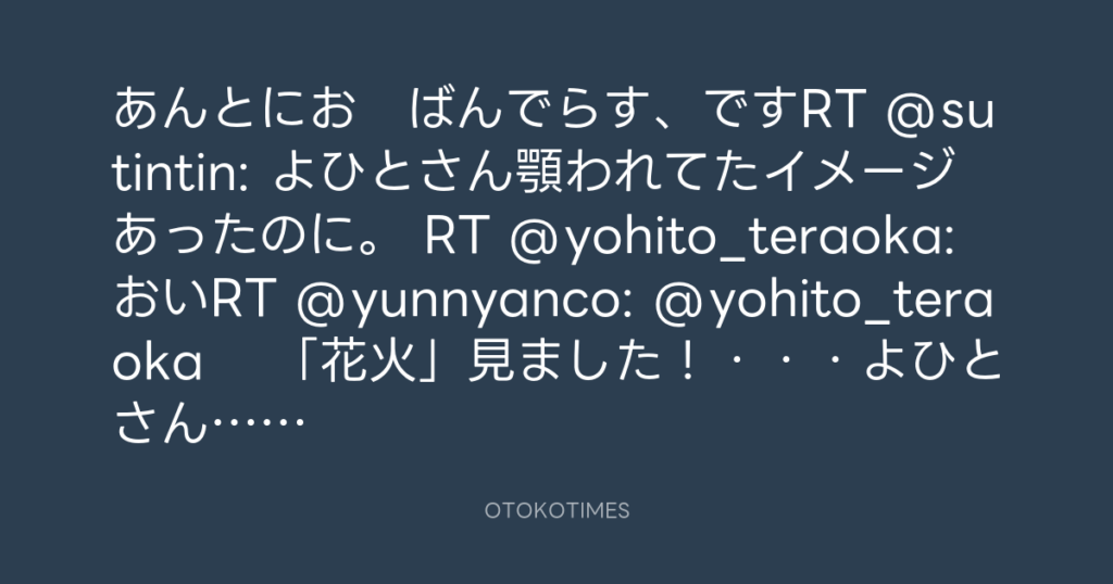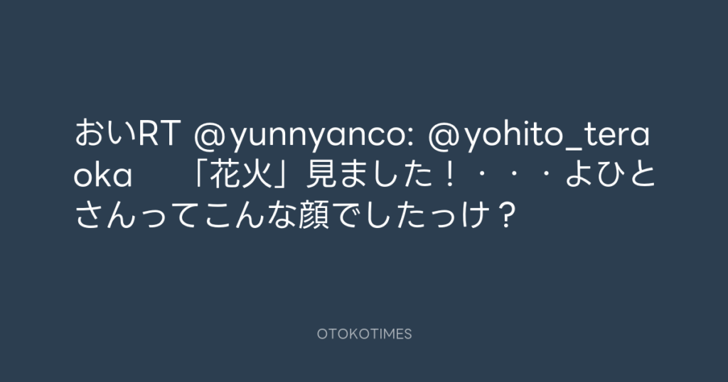 おいRT @yunnyanco: @yohito_teraoka 「花火」見ました!・・・よひとさんってこ...