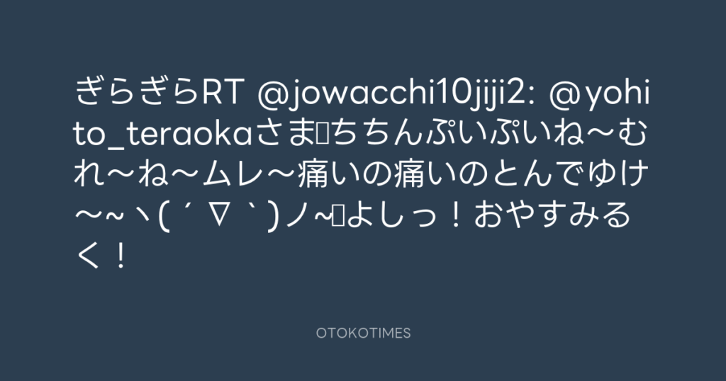 ぎらぎらRT @jowacchi10jiji2: @yohito_teraokaさま☆ちちんぷいぷいね〜むれ〜ね〜... -
