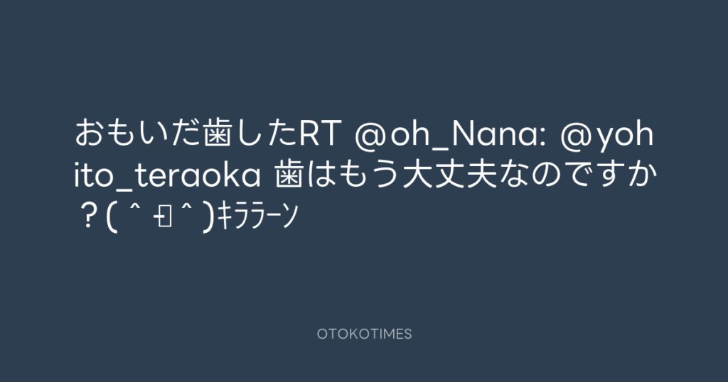 おもいだ歯したRT @oh_Nana: @yohito_teraoka 歯はもう大丈夫なのですか?(^-☆^)... -