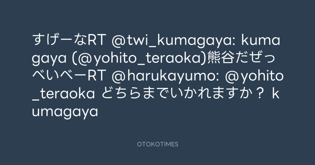 すげーなRT @twi_kumagaya: kumagaya (@yohito_teraoka)熊谷だぜっべいべーRT @har... -