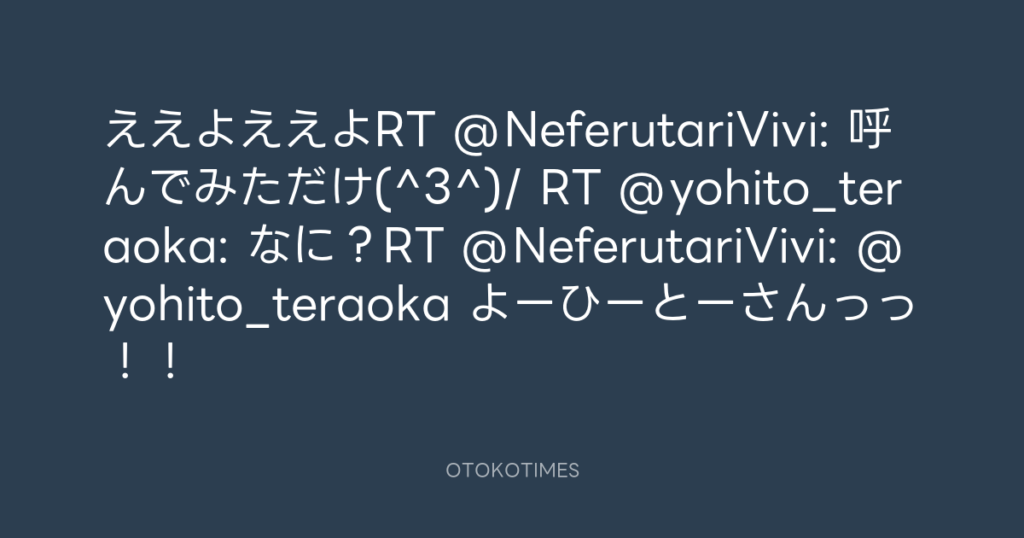 ええよええよRT @NeferutariVivi: 呼んでみただけ(^3^)/ RT @yohito_teraoka: なに... -