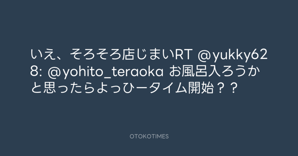 いえ、そろそろ店じまいRT @yukky628: @yohito_teraoka お風呂入ろうかと思ったら... -