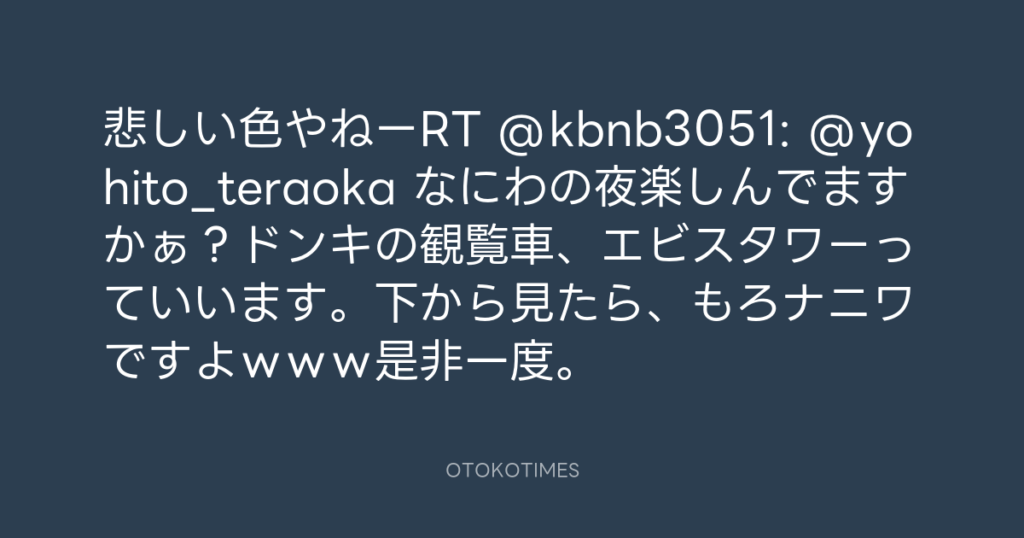 うわぁー、ナニワでんなーRT @sayamaci: @yohito_teraoka ドンキホーテの観覧車で... -
