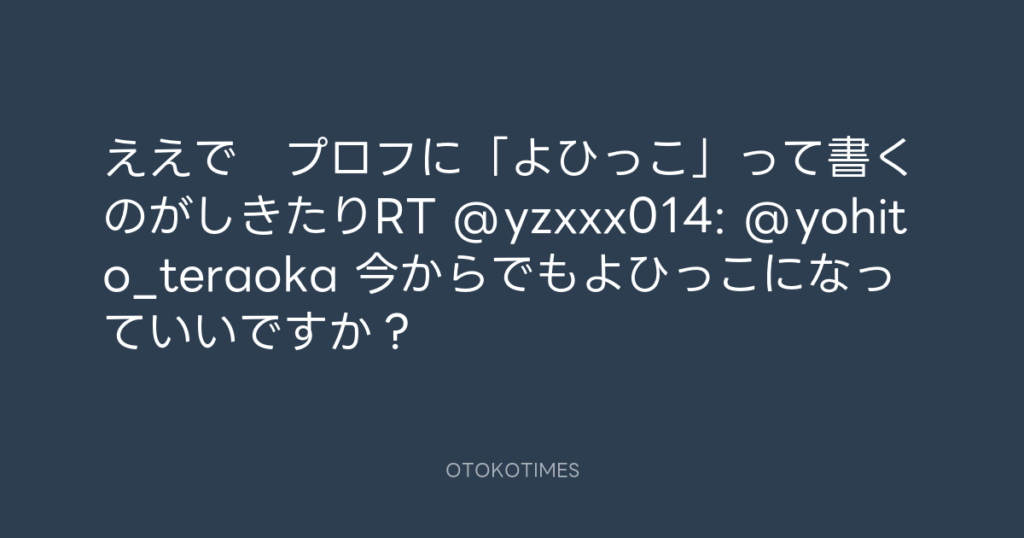ええで プロフに「よひっこ」って書くのがしきたりRT @yzxxx014: @yohito_teraoka... -