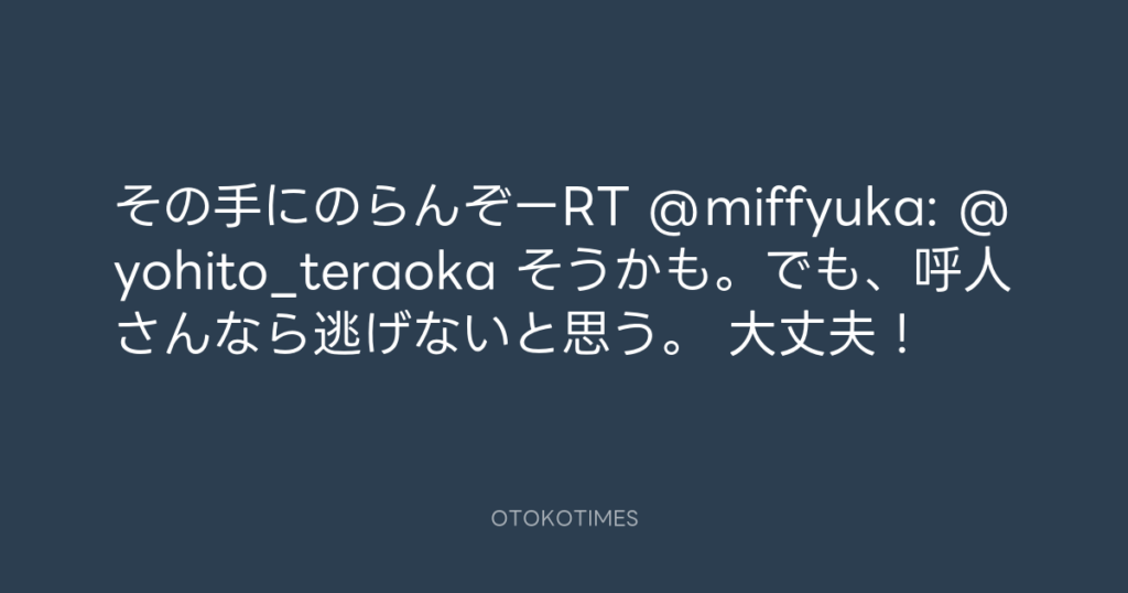 その手にのらんぞーRT @miffyuka: @yohito_teraoka そうかも。でも、呼人さんなら... -
