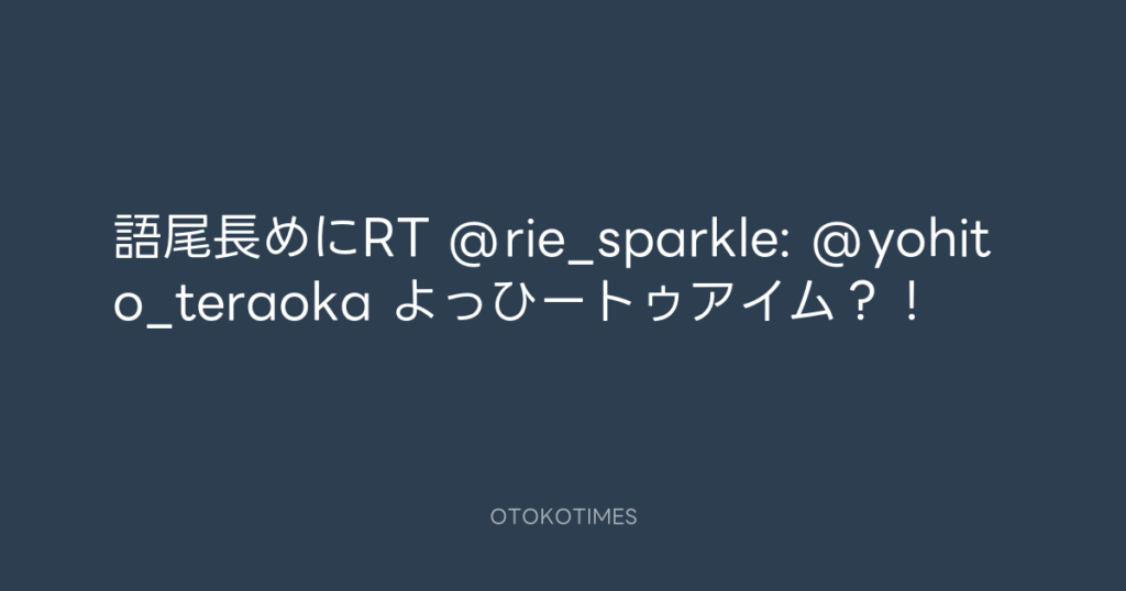 語尾長めにRT @rie_sparkle: @yohito_teraoka よっひートゥアイム?! -