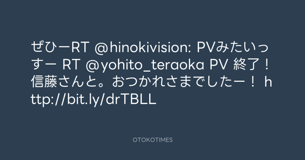 ぜひーRT @hinokivision: PVみたいっすー RT @yohito_teraoka PV 終了!信藤さんと... -