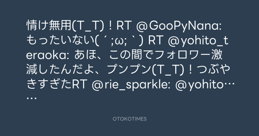 情け無用(T_T)!RT @GooPyNana: もったいない(´;ω;`) RT @yohito_teraoka: あほ、...