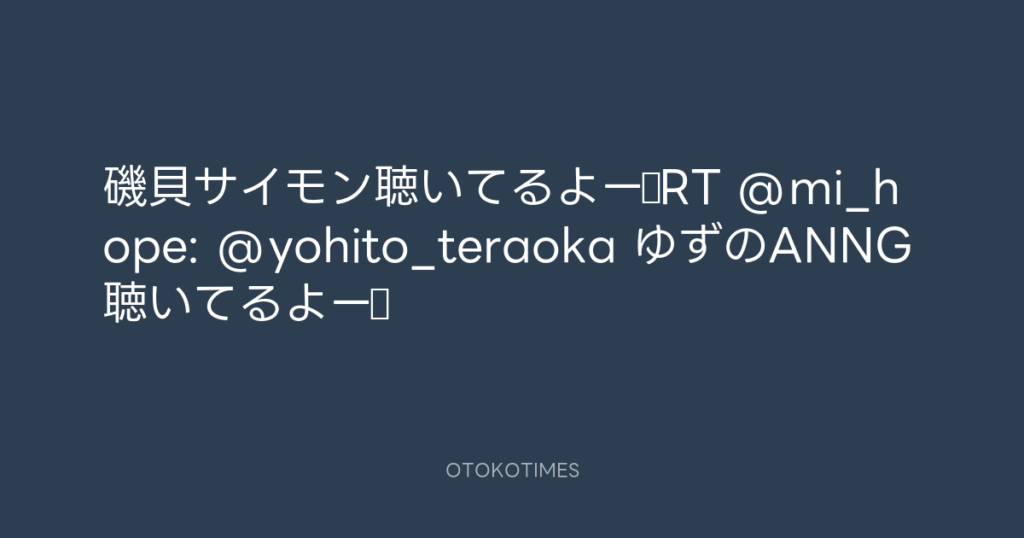 磯貝サイモン聴いてるよー♪RT @mi_hope: @yohito_teraoka ゆずのANNG聴いてるよー♪ -