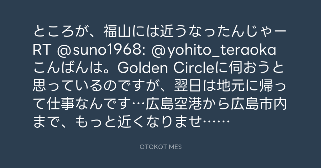 ところが、福山には近うなったんじゃーRT @suno1968: @yohito_teraoka こんばんは... -