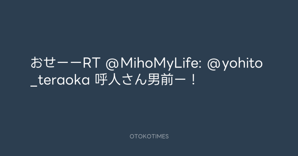 おせーーRT @MihoMyLife: @yohito_teraoka 呼人さん男前ー! -