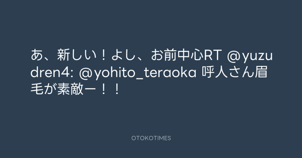 あ、新しい!よし、お前中心RT @yuzudren4: @yohito_teraoka 呼人さん眉毛が素敵ー... -