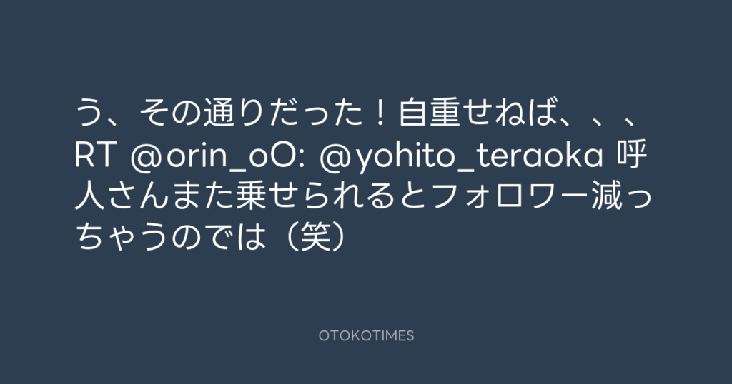 う、その通りだった!自重せねば、、、RT @orin_oO: @yohito_teraoka 呼人さんまた... -