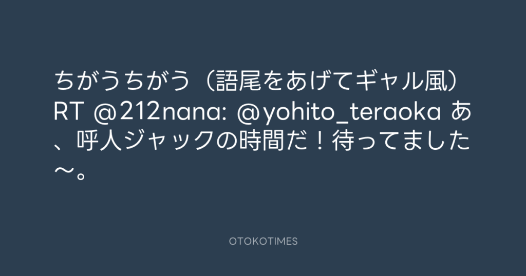 ちがうちがう(語尾をあげてギャル風)RT @212nana: @yohito_teraoka あ、呼人ジャ... -