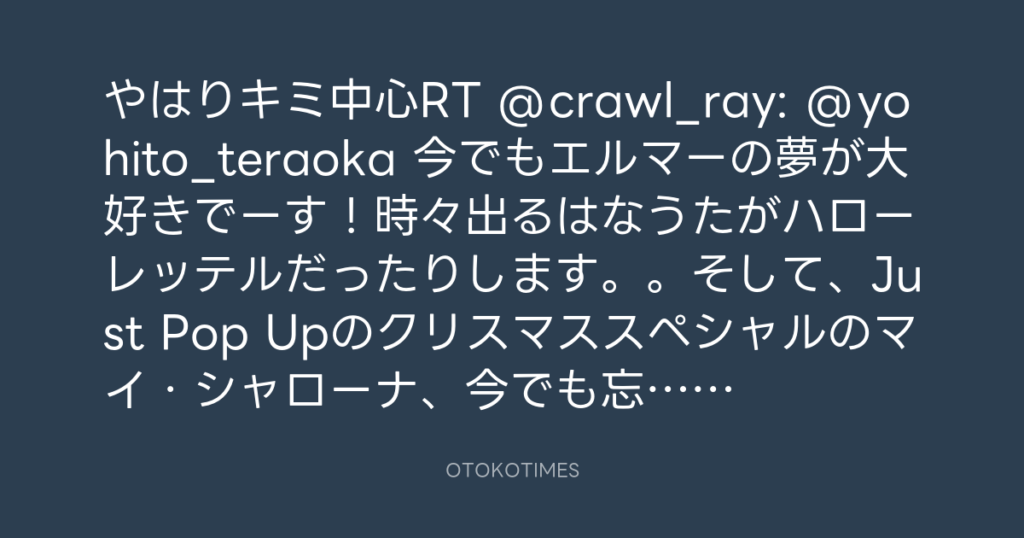 やはりキミ中心RT @crawl_ray: @yohito_teraoka 今でもエルマーの夢が大好きでーす... -