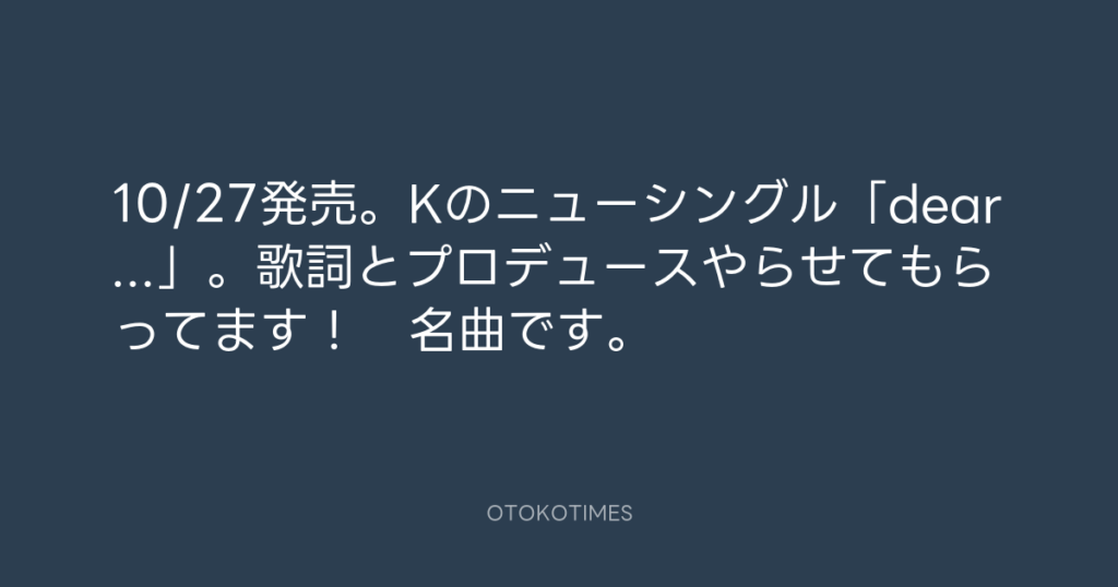10/27発売。Kのニューシングル「dear...」。歌詞とプロデュースやらせてもらってま... -