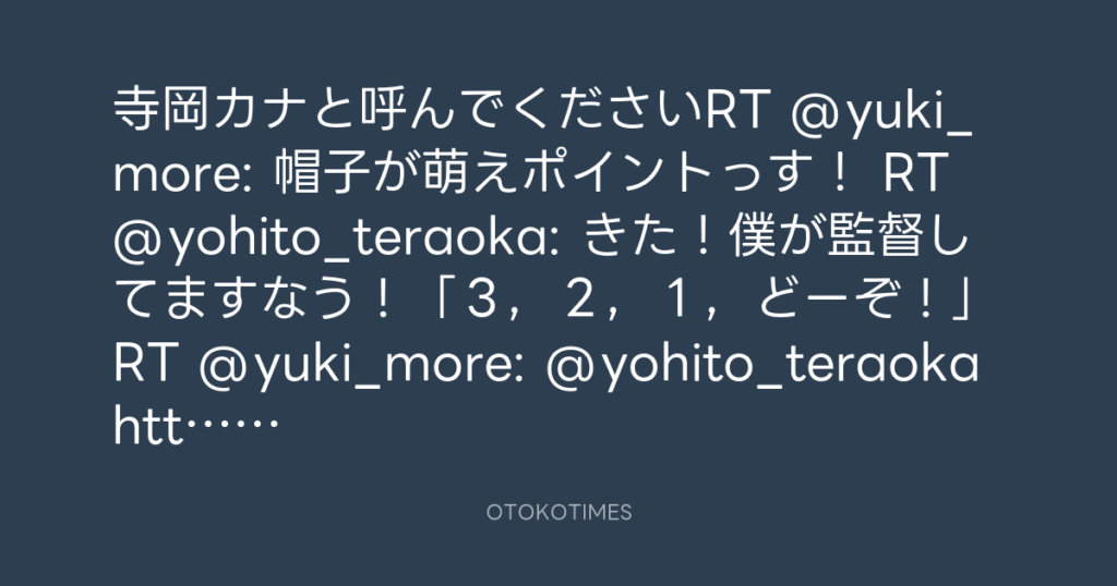 寺岡カナと呼んでくださいRT @yuki_more: 帽子が萌えポイントっす! RT @yohito_te... -