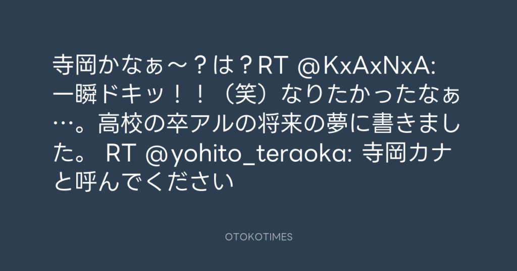 寺岡かなぁ〜?は?RT @KxAxNxA: 一瞬ドキッ!!(笑)なりたかったなぁ…。高校の... -
