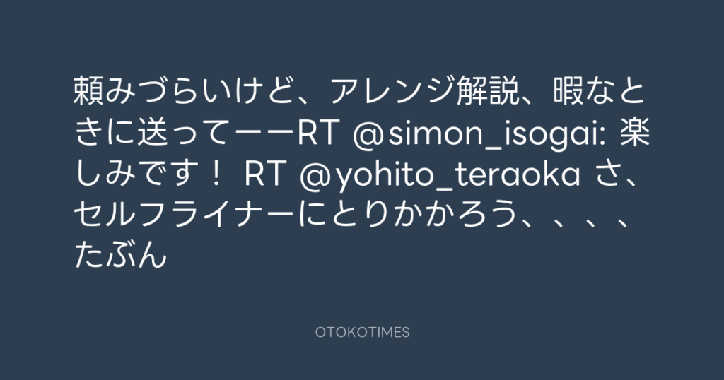 頼みづらいけど、アレンジ解説、暇なときに送ってーーRT @simon_isogai: 楽しみで... -