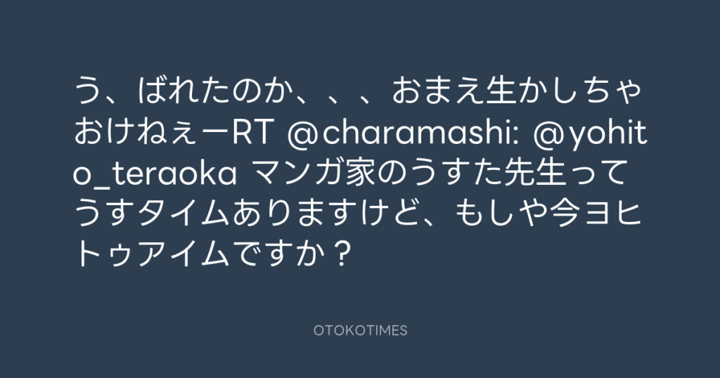 う、ばれたのか、、、おまえ生かしちゃおけねぇーRT @charamashi: @yohito_teraoka... -