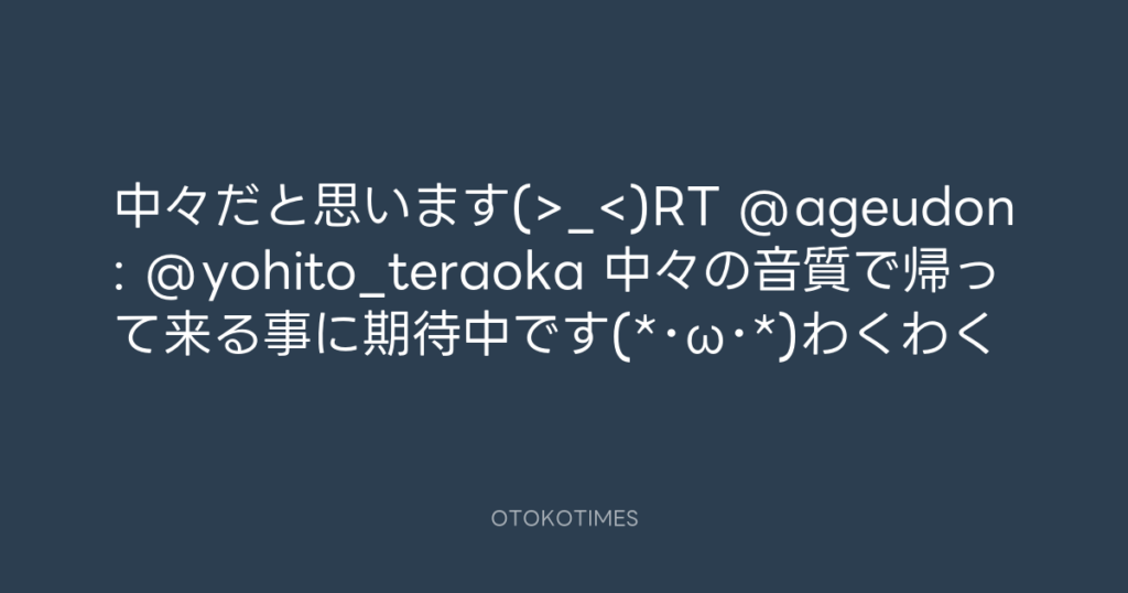 中々だと思います(>_<)RT @ageudon: @yohito_teraoka 中々の音質で帰って来...
