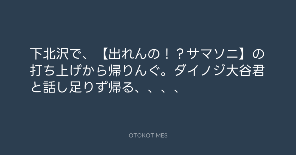 下北沢で、【出れんの!?サマソニ】の打ち上げから帰りんぐ。ダイノジ大谷君と話... -