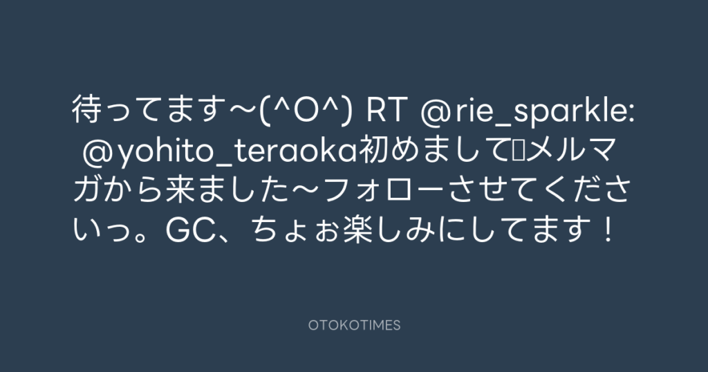 待ってます~(^O^) RT @rie_sparkle: @yohito_teraoka初めまして☆メルマガから来ま... -