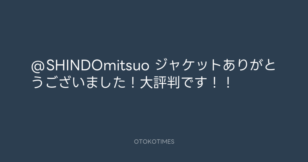 @SHINDOmitsuo ジャケットありがとうございました!大評判です!!