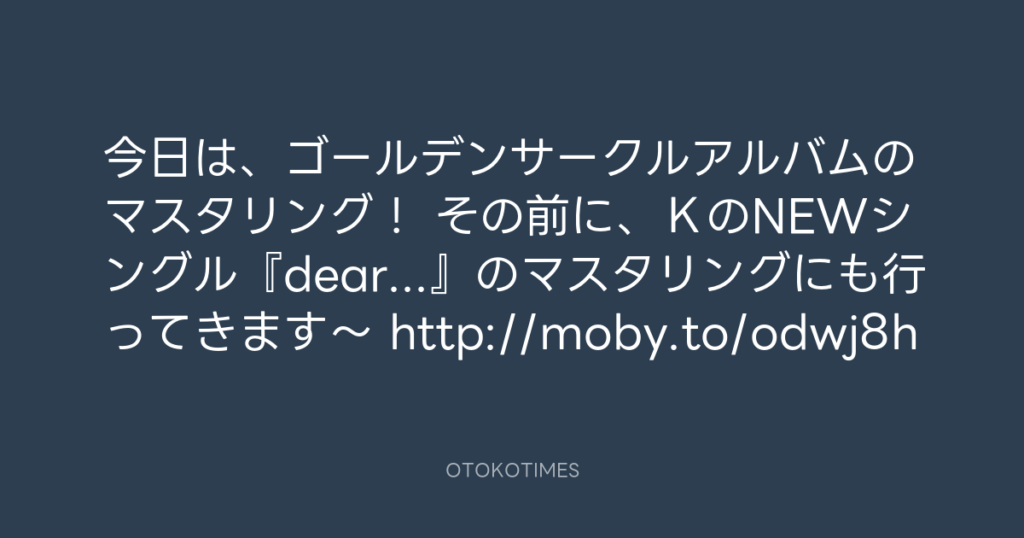 今日は、ゴールデンサークルアルバムのマスタリング! その前に、KのNEWシングル... -