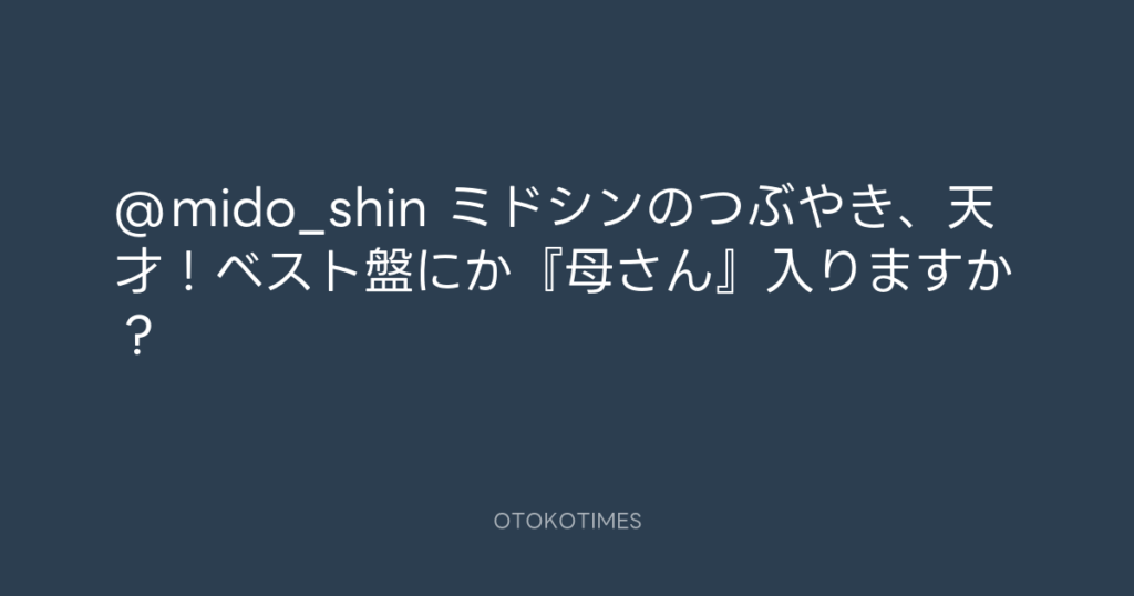 @mido_shin ミドシンのつぶやき、天才!ベスト盤にか『母さん』入りますか? -