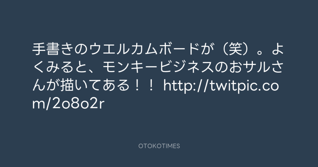 手書きのウエルカムボードが(笑)。よくみると、モンキービジネスのおサルさんが... -