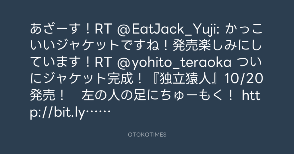 あざーす!RT @EatJack_Yuji: かっこいいジャケットですね!発売楽しみにしていま... -