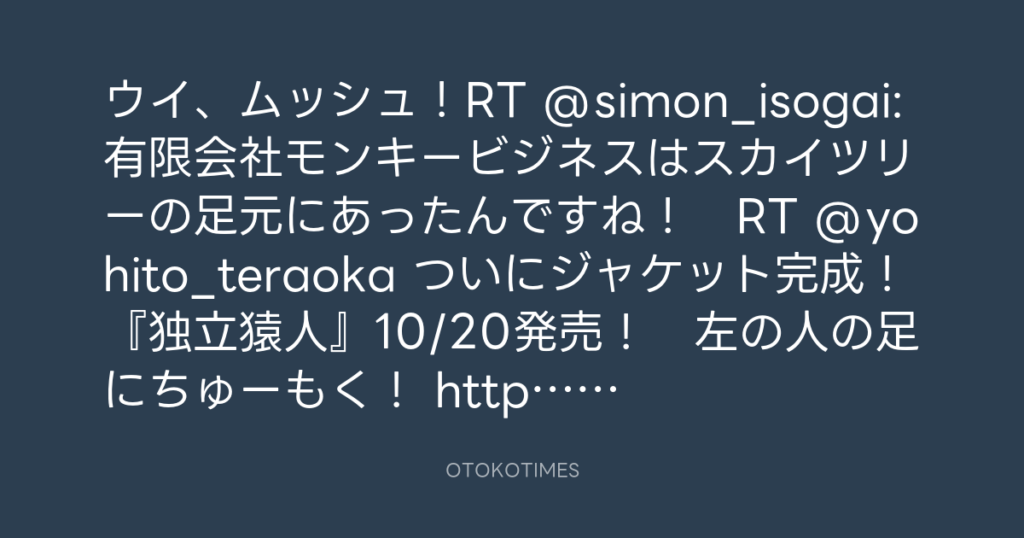 ウイ、ムッシュ!RT @simon_isogai: 有限会社モンキービジネスはスカイツリーの足... -