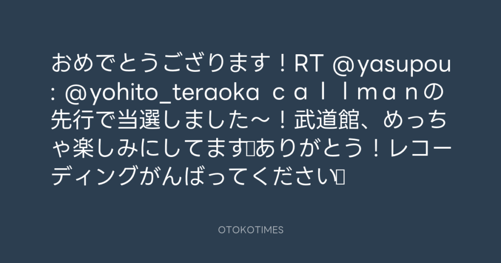 おめでとうござります!RT @yasupou: @yohito_teraoka callmanの先行で当選... -