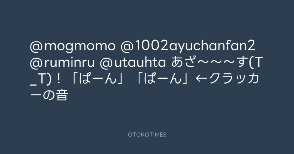 @mogmomo @1002ayuchanfan2 @ruminru @utauhta あざ〜〜〜す(T_T)!「ぱーん」「ぱ... -
