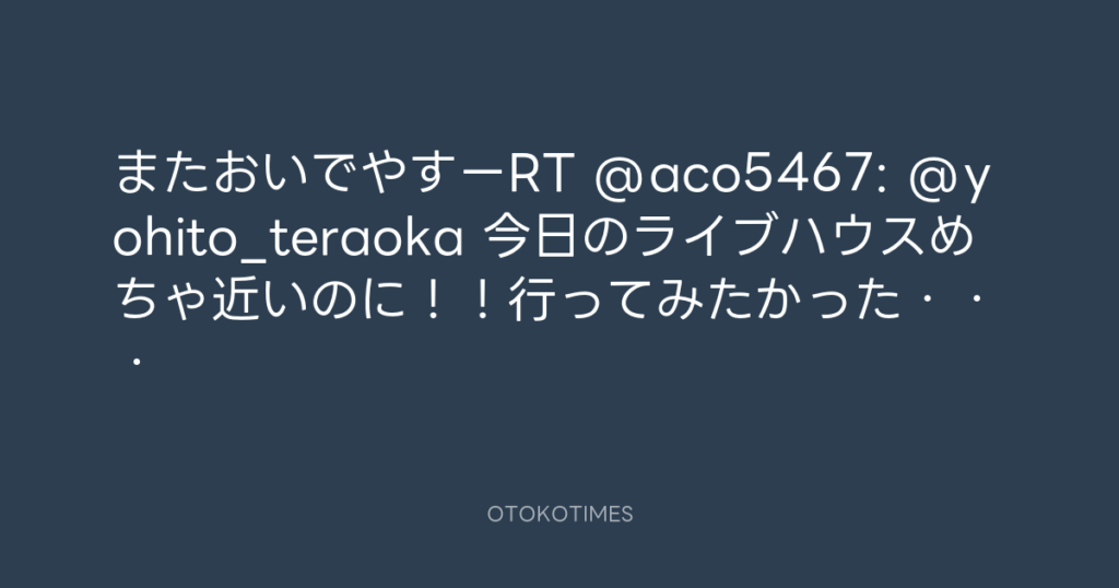 またおいでやすーRT @aco5467: @yohito_teraoka 今日のライブハウスめちゃ近いのに... -