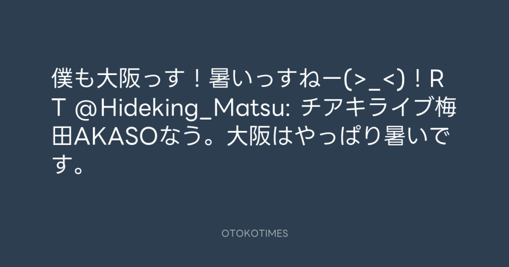 僕も大阪っす!暑いっすねー(>_<)!RT @Hideking_Matsu: チアキライブ梅田AK... -