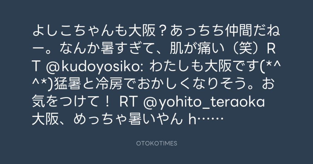 よしこちゃんも大阪?あっちち仲間だねー。なんか暑すぎて、肌が痛い(笑)RT @kud... -