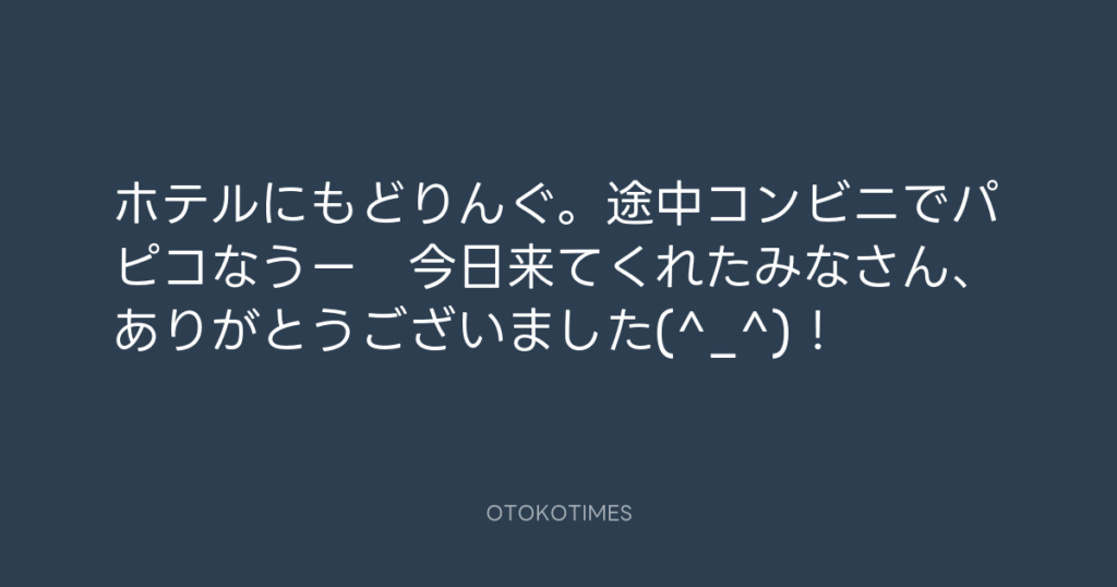 ホテルにもどりんぐ。途中コンビニでパピコなうー 今日来てくれたみなさん、あり... -